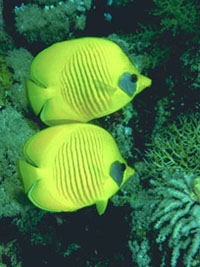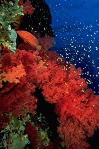 Off the point are a trio of large formations topping out at 8 to 15m below the surface, each one slightly different. Schools of Pennant Butterfly fish swim about. Below 30m are schools of Unicorn Surgeon fish, Emperor fish and Jacks. Coral growth is varied and colorful. The middle pinnacle's seaward side is covered with pink soft coral. Slightly more protected areas have large gorgonians, black coral, lots of altheas and tubastrea, angelfish, scorpionfish, lionfish and many invertebrates.