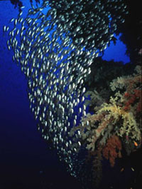 Close to the point there are whip coral, gorgonians, large sponges and soft coral. We saw several Lionfish, Razorfish, juvenile Sweet-lips, sea snakes, and colorful reef fish. Turtles are occasionally sighted and there have been reports of whale sharks and even one sighting of a dugong.