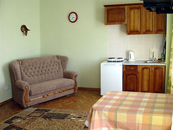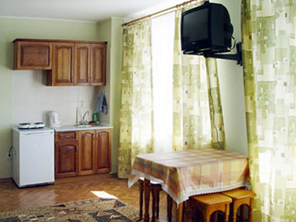 Dnepropetrovsk Ukraine remodeled western standard air-conditioned studio apartment with stunning views of the city form balcony. Located at the corner of Karl Marks and Dzerzhinskogo St. you are just a few minutes from an affiliate office and the center of the city. This bright, sunny & clean apartment with new furniture, sleeper sofa and has a king size bed. Save a few dollars cooking in the completely furnished kitchenette with self-contained hot water heater and a water filter system. The apartment has new soundproof windows to assure a good nights sleep. This building has 3 elevators and a doorman for your security. 24 hour supermarket and money exchange close by. Amenties include Color TV and telephone with free local calls.