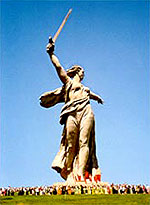 The Mother of Russia Statue as seen during the Victory Day celebrations on May 9th. |